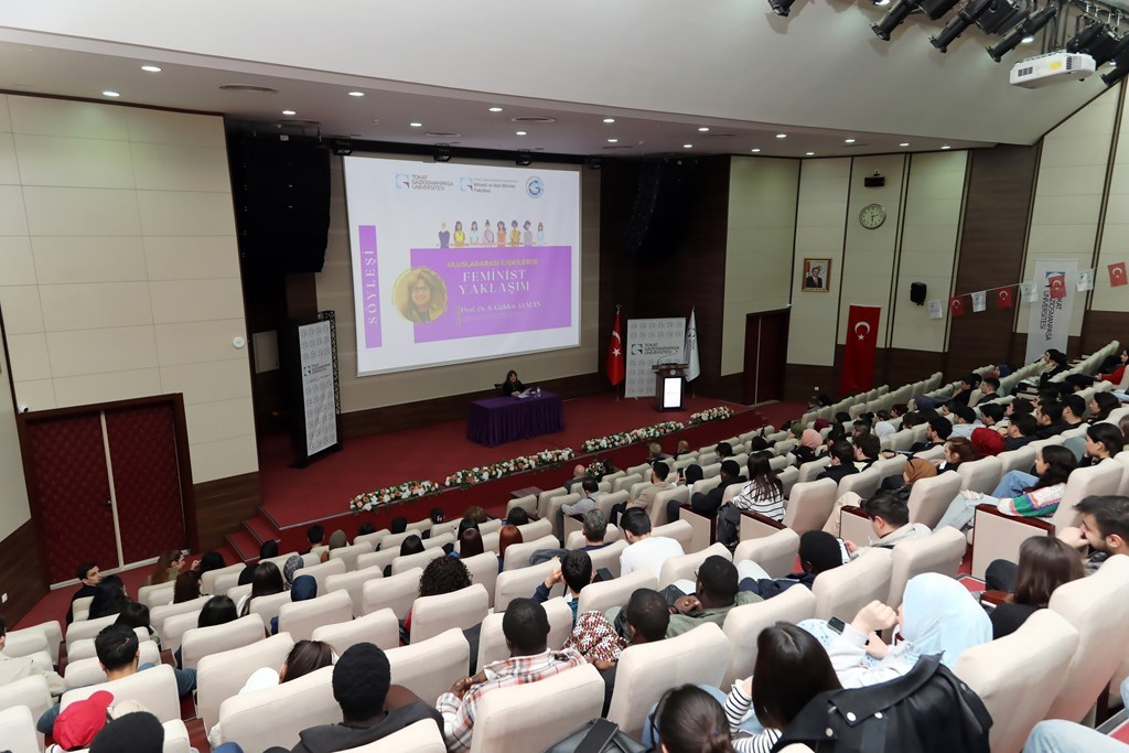 Söyleşiye Rektör Yardımcımız Prof. Dr. Mücahit Eğri, Genel Sekreterimiz Prof. Dr. Muhittin Demiray, akademik ve idari personelimiz ile öğrenciler katılım gösterdi. İstanbul Üniversitesi Öğretim Üyesi Prof. Dr. Saadet Gülden Ayman'ın konuk konuşmacı olarak yer aldığı etkinlikte, feminist yaklaşımın uluslararası ilişkilerdeki konumu detaylı bir şekilde ele alındı.